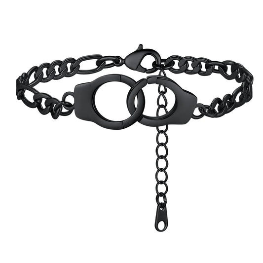 • Black Handcuff Anklets for Women Partners in Crime Stainless Steel Punk Jewelry 8.5'' Adjustable Ankle Chain Foot Link Infinity Bracelet for Her