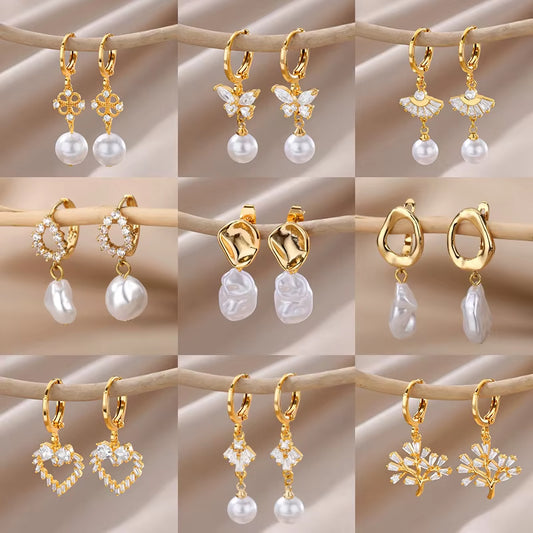 Zircon Pearl Earrings for Women 2023 Trending Stainless Steel Gold Color Drop Earring Wedding Party Luxury Jewelry Bijoux Femme
